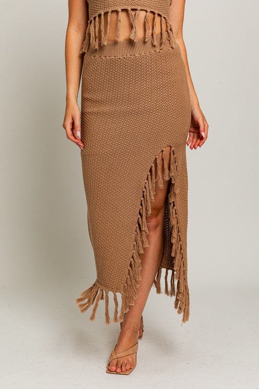 Tassel Detail Sweater Midi Skirt TAUPE XS by LE LIS | Fleurcouture