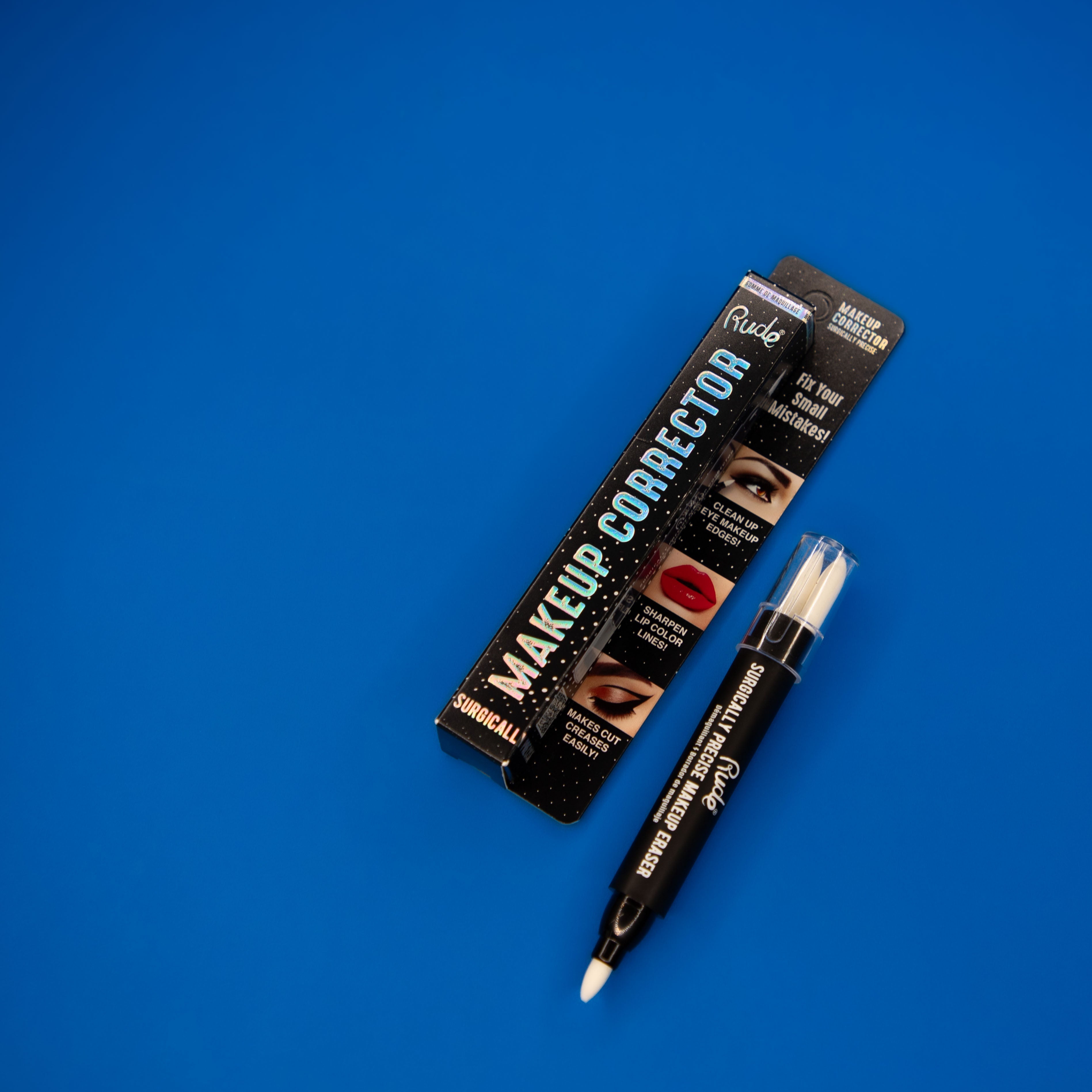 Made a mistake but don't want to start over? Correct minor makeup mishaps with Rude Cosmetics Surgically Precise Makeup Corrector Pen. The easiest way to clean up small eye and lip makeup mistakes, quickly and effectively. Removes both non-waterproof and waterproof makeup.