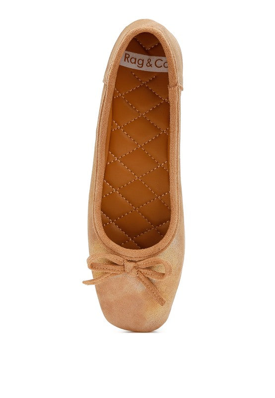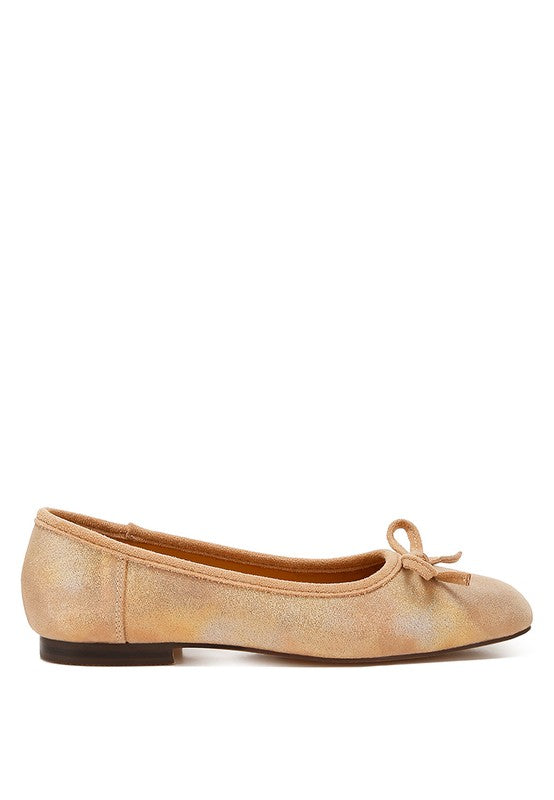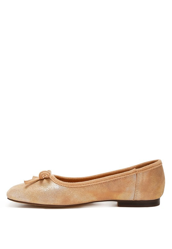 Rubyrose Suede Bow Embellished Ballerinas Beige by Rag Company | Fleurcouture