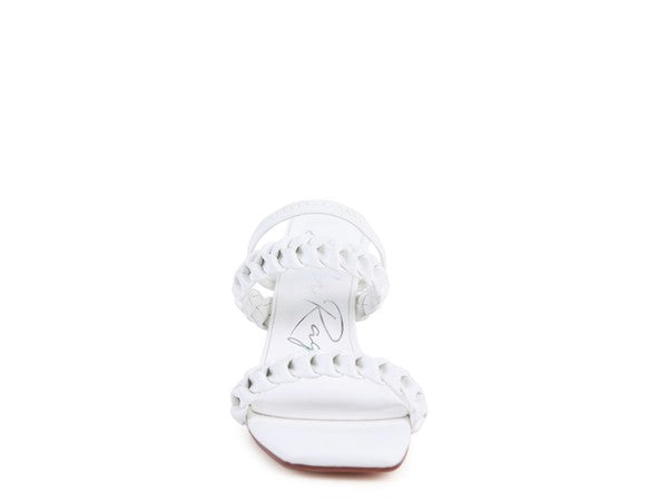 ARNIE BRAIDED BLOCK HEELED SLIDER SANDALS White 6 by Rag Company | Fleurcouture