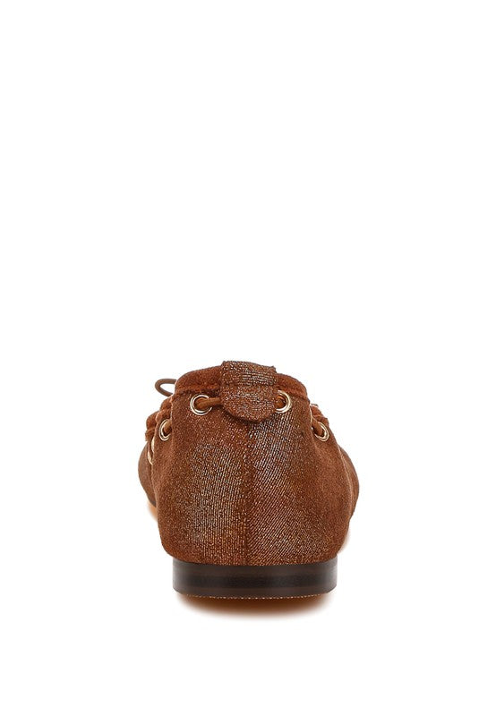 Darlow Drawstring Bow Ballerinas Brown US-5 / UK-3 / EU-36 by Rag Company | Fleurcouture